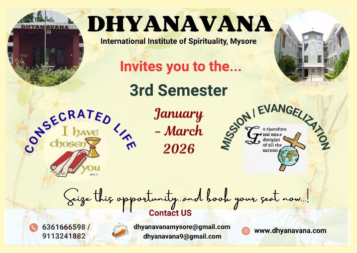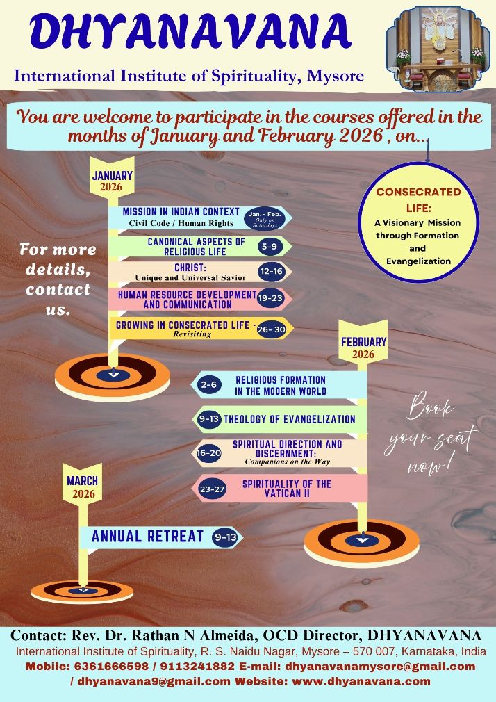 The topics and resource persons are as follows: April 15-20: Consecrated Life - Re-Visiting as School of Love - by Fr. Sunil