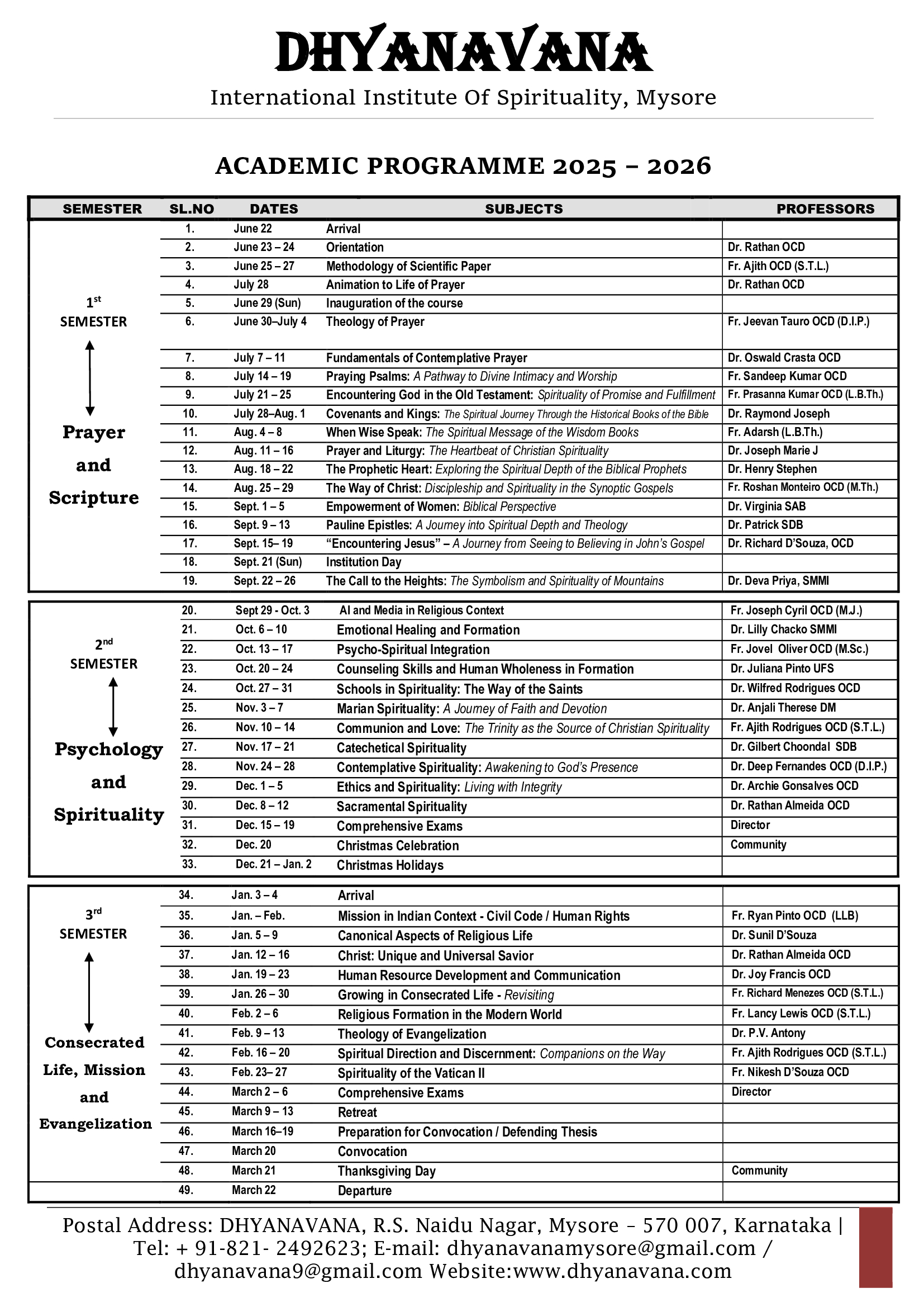 DHYANAVANA, INTERNATIONAL INSTITUTE OF SPIRITUALITY